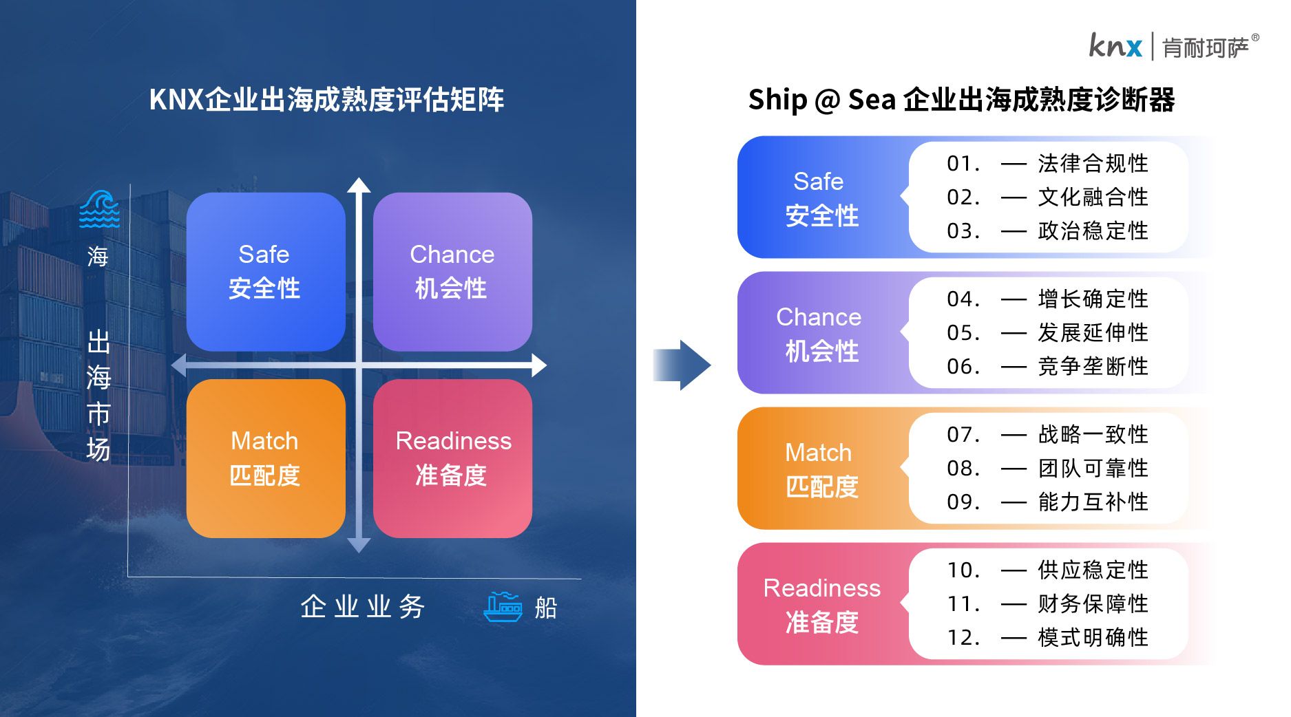 这段时间里,KNX研究院也对企业出海进行了观察,在研究中我们更加确定这是一个严谨的复杂的系统型事项。要成功地驱动这整个链条的运转,我们建议企业在做出海决策前进行一次全面的“出海能力成熟度”评估,客观地理解企业当前的准备情况和能力情况。