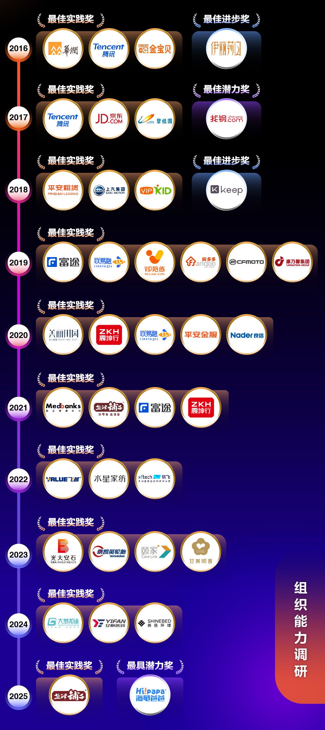 2016年至2025年,组织能力调研刻画出中国企业内在肌理的成长轨迹,每年都有独特的时代印记与研究焦点。