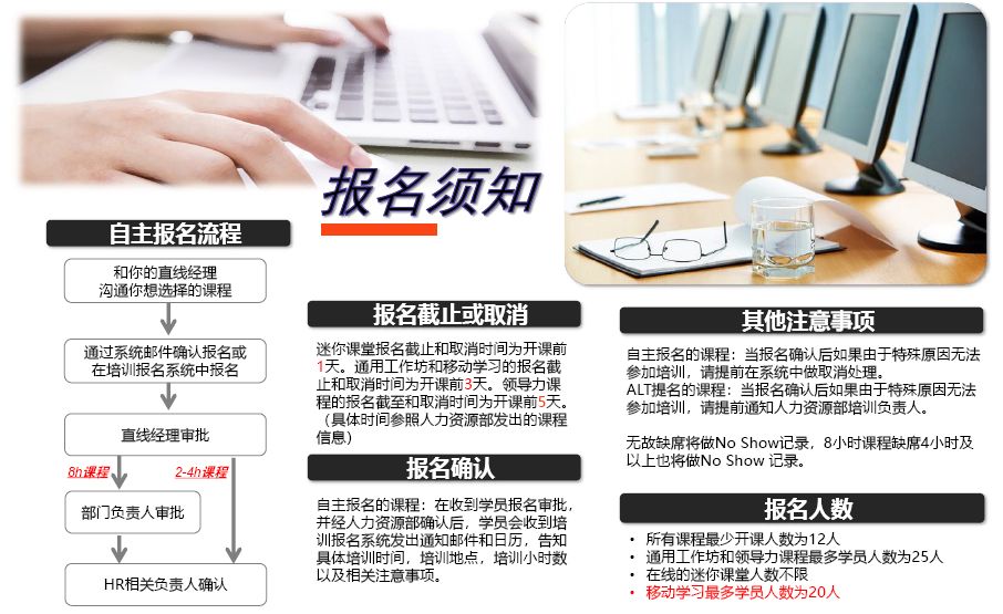 学习内容的选择以提升员工的职业能力为目的,作为所从事职业的多种能力的综合,职业能力的提升对于不同岗位的员工具有重要的作用。为了保证员工的学习效果,培训部门在员工报名课程的时候进行了名额限制。