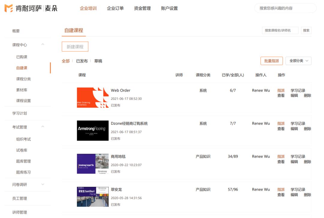 培训部门将麦朵学习平台中的“自建课”功能作为应用的第一步,“我们首先在麦朵学习平台上传公司的培训内容,然后开始制定员工学习和考核计划。”