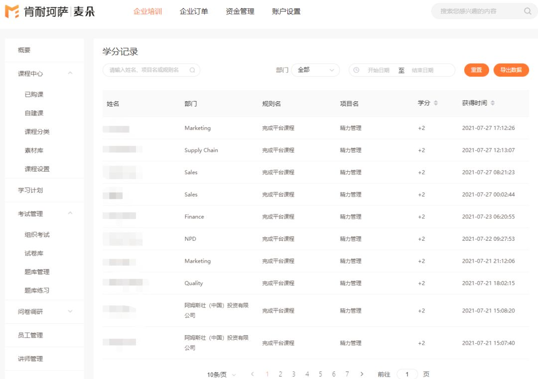 “在我们引用了麦朵数智化学习平台之后,首先应用到的是业务部门的培训。疫情期间,很多业务人员无法到线下开展工作,公司要求业务部门在这段时间内进行销售技能,产品等其他内容的学习和知识补充,领导对这一块非常重视,所以我们对于业务部门的考核也非常慎重,不仅设置了考试,并在六月和七月份进行了补考。”