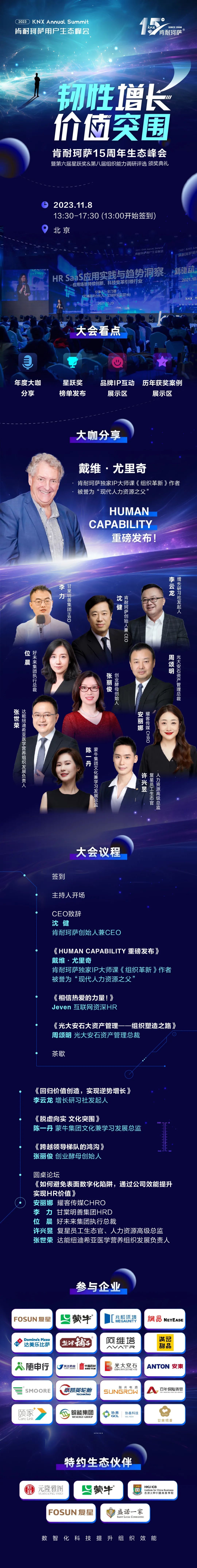 11月8日,肯耐珂萨将在北京隆重举行15周年生态峰会暨第六届星跃奖颁奖盛典。本次峰会旨在展示企业在人力资本管理实践中的最佳解决方案和创新理念,与人力资源行业大咖、资深专家共同探讨新的商业世界中的机遇与挑战。
