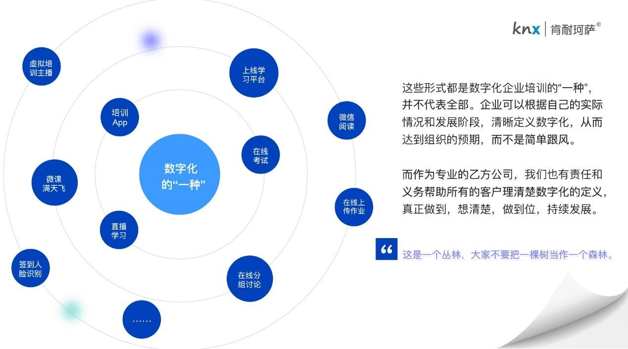我们的建议是,在数字化企业培训的实践里不要追求“概念时尚”,不要在技术名词的海洋里迷失航向。核心要务是回归到场景中,想清楚企业培训的基本面,想清楚为什么要实施数字化,想清楚业务场景需要怎样的技术。