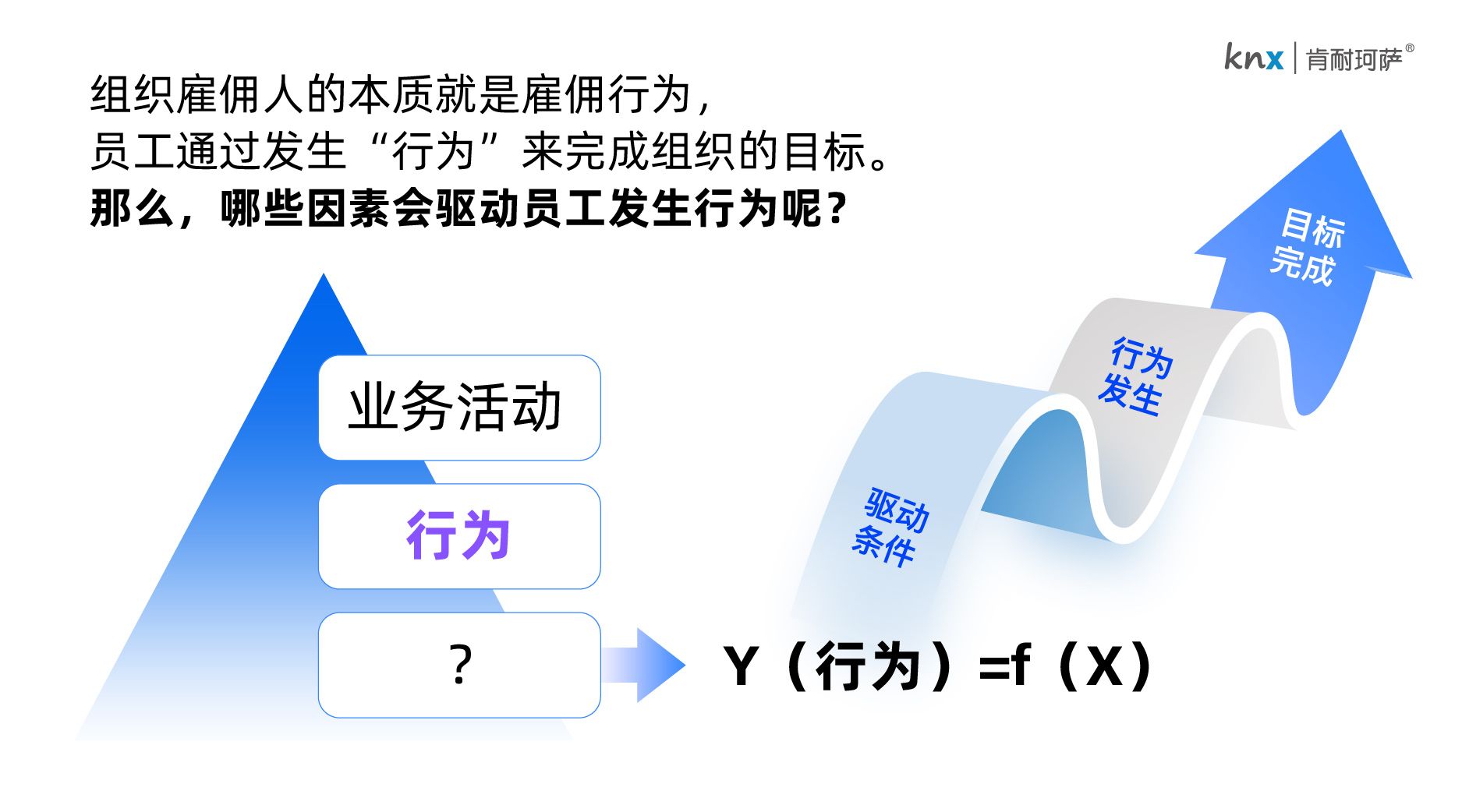 经过系统性研究之后,我们发现:人要发生行为,在个体层面有四个条件,即有4个X作为变量会影响Y行为的发生。当然还有群体层面和组织环境层面的因素,这里不做展开的研究。