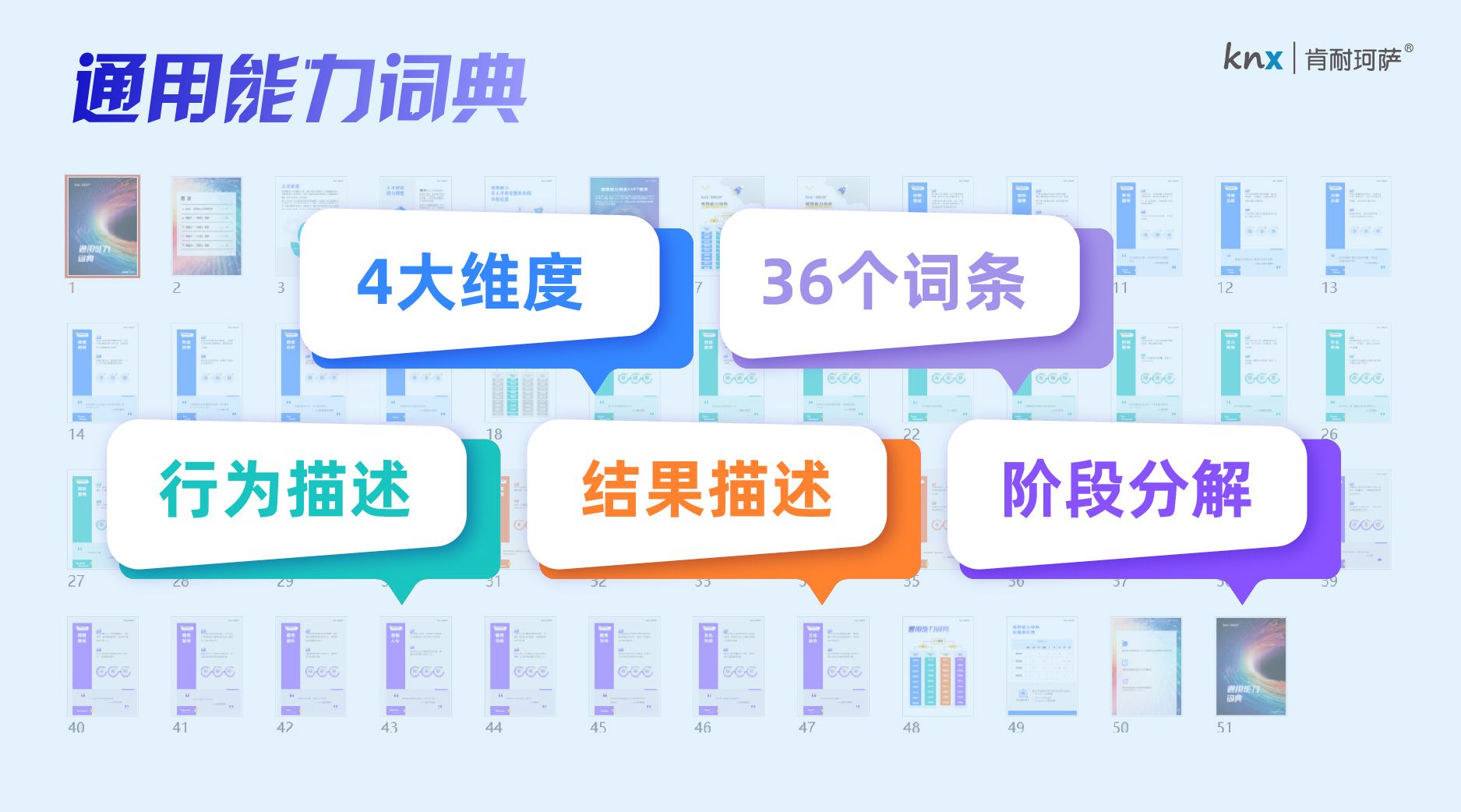 KNX研究院经过广泛的文献检索、最佳实践的提炼,以及与客户组织进行的工作分析,制作了这本《通用能力词典》,为企业和HR提供实用的人才通用能力词条,希望能为HR的建模工作提供一个概念框架或内容起点。