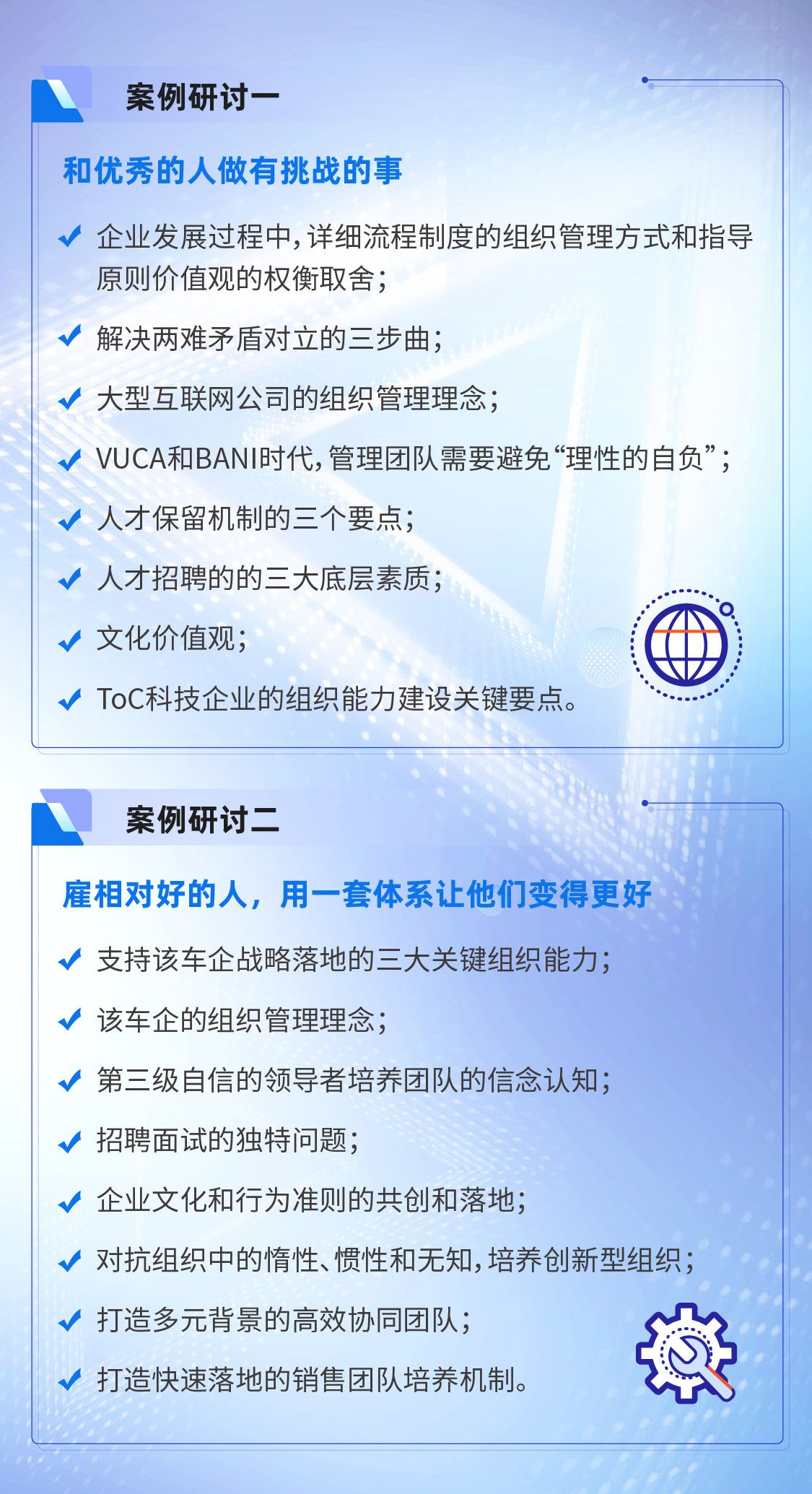在课程中,杨教授将通过小组讨论的形式,帮助学员深入理解组织能力的构建方法论,结合行业特性和客户需求,探索适合自身的组织能力框架。